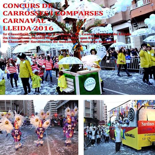 - 1r classificat: La comparsa La Pluja de Carnaval de l’Associació de veïns del Centre Històric de Lleida. Rebrà 600€ de premi.