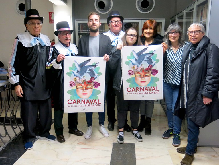 L’obra que il·lustra el Carnaval 2020 de Lleida és obra de l’estudiant del CFGS de Gràfica Publicitària de l’Escola Municipal de Belles Arts de Lleida (EAM), Mireia Turón. L’autora ha explicat que la idea parteix d’un punt poètic, que és totalment contrari a la festa del Carnaval. Ha parlat del cap de dona però sense rostre, perquè tothom s’hi pugui sentir identificat, i de la màscara, que recorda d’on ve el Carnestoltes. D’aquest cap surten elements, com gavines, “que no pinten res a Lleida”, ha dit, o sardines. Turón ha agraït l’oportunitat que dona la Paeria perquè l’alumnat participi en l’elaboració del cartell.