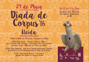 Los actos de la XXII Diada Tradicional de Corpus se realizarán el domingo 28 de mayo en Lleida, des de las 10 h de la mañana hasta a las 19h de la tarde, podemos admirar las alfombras de flores que vestirán el "Eix Comercial". A la 13 h, en la plaza Paeria, se llevará a cabo la salida y los bailes  del Aliga de Lleida, el León de Lleida y los Cavallets del Corpus.